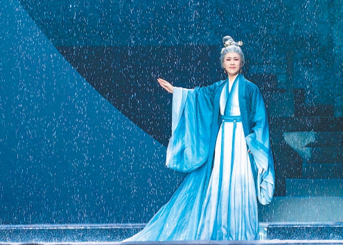 从戏名和主角戏份来看,《李清照》可谓当之无愧的大女主戏,从18岁到71岁,饰演李清照的女高音郑培钦几乎演满全场,挑战相当艰巨。郑培钦透露,表演的一大难点是“抢装”,有一次换装甚至要在50秒内完成,节奏非常紧张,但郑培钦对人物的刻画始终维持在稳定的水准上:青年时“倚门回首,却把青梅嗅”的娇羞、中年时“人比黄花瘦”的哀婉、晚年时颠沛流离的苍凉,皆被她以层次细腻、颇有戏曲韵味的身段和声乐塑造呈现。