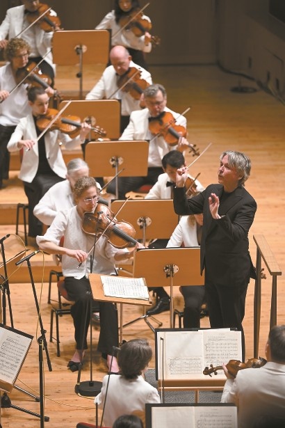 1日晚,萨洛宁执棒纽约爱乐乐团带来法国作品专场。 解放日报记者 董天晔 摄