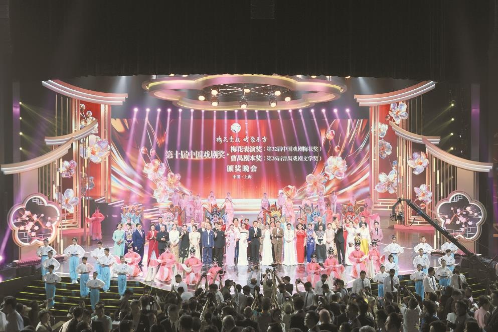 第32届中国戏剧梅花奖、第26届曹禺戏剧文学奖颁奖晚会在上海文化广场举行。 文汇报记者 叶辰亮摄