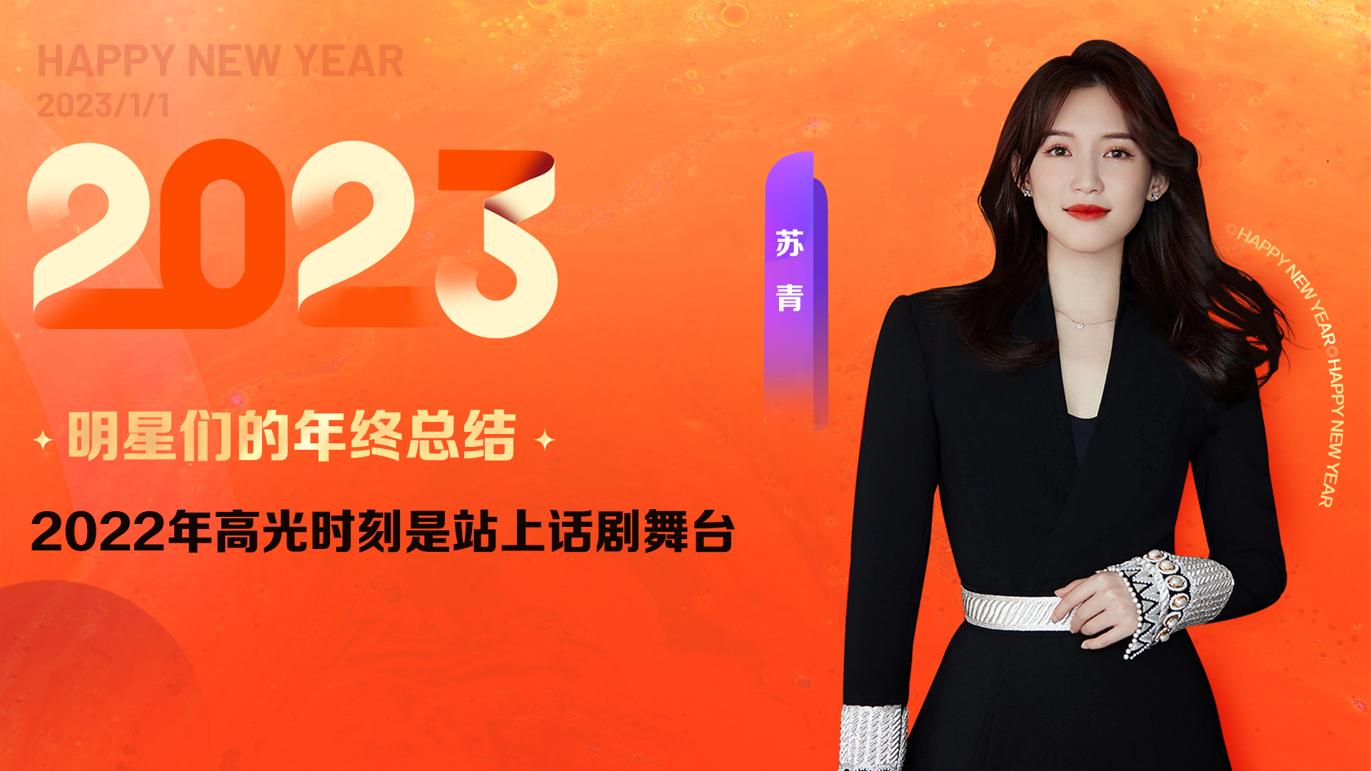 新年来临,演员苏青祝福观众新年快乐、万事如意。苏青认为,自己2022年的高光时刻是站在舞台上演话剧的那一刻,她的新年愿望则是希望大家都平安健康。(完)。