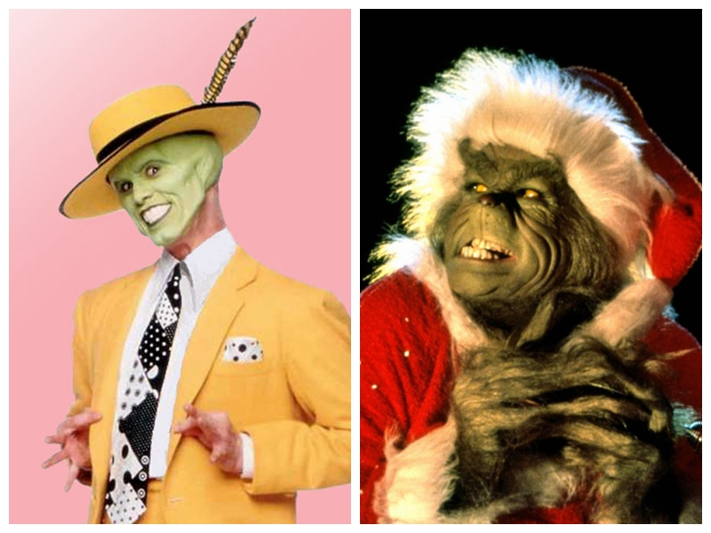 左右图分别为金·凯瑞主演影片《变相怪杰》和《格林奇偷走圣诞节》剧照。