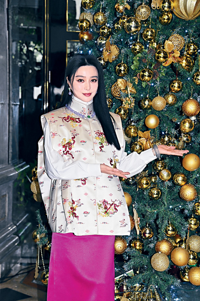 富商赵世曾与子女赵式芝、赵式浩、赵式正昨日于赵苑三代同堂举行圣诞派对,范冰冰应邀出席,跟赵世曾为圣诞树亮灯,即兴跳舞。