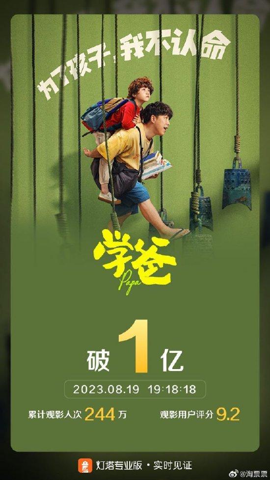 新浪娱乐讯 据灯塔专业版实时数据,截至8月19日19时18分, 黄渤、单禹豪、闫妮、张钧甯、张子贤、万茜等主演电影《学爸》票房突破1亿。