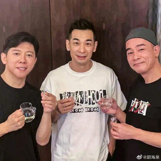 新浪娱乐讯 8号,胡海泉[微博]在微博晒出与赵文卓、陈小春[微博]相聚小酌的照片,配文:“和哥哥们整点儿白的。”照片中三位哥哥对镜头开心举杯,小春哥脸上微红,看上去已经是微醺的状态。网友留言调侃论:“少给春哥喝酒,不然又要看错火力值了!”“街道办事处yyds!和大湾区合作起来!”